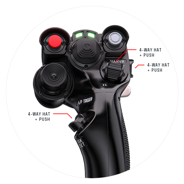 Want an aircraft accurate momentary thumb button? Want a highly versatile 4-way + push thumb hat instead? Want to convert the 2-way switches to 4-way? The VPC FLNKR has you covered with included swappable input hats to tailor your FLNKR grip to your exact preferences!